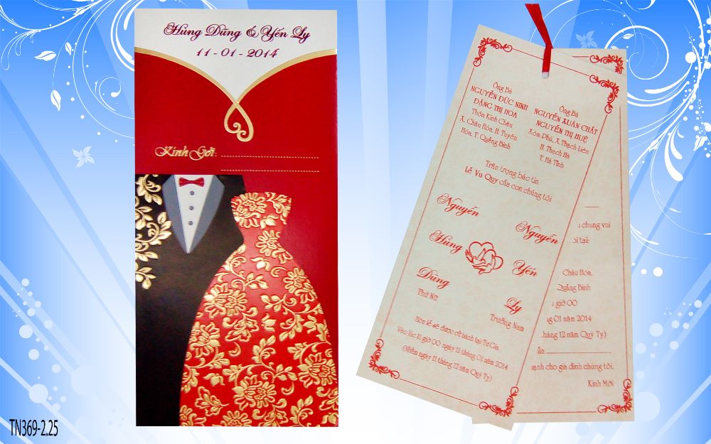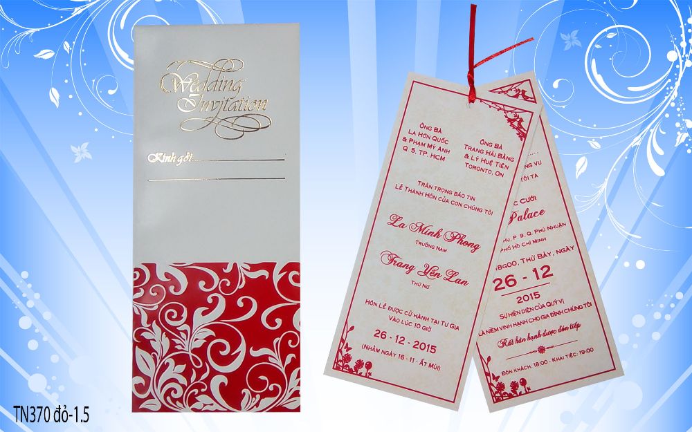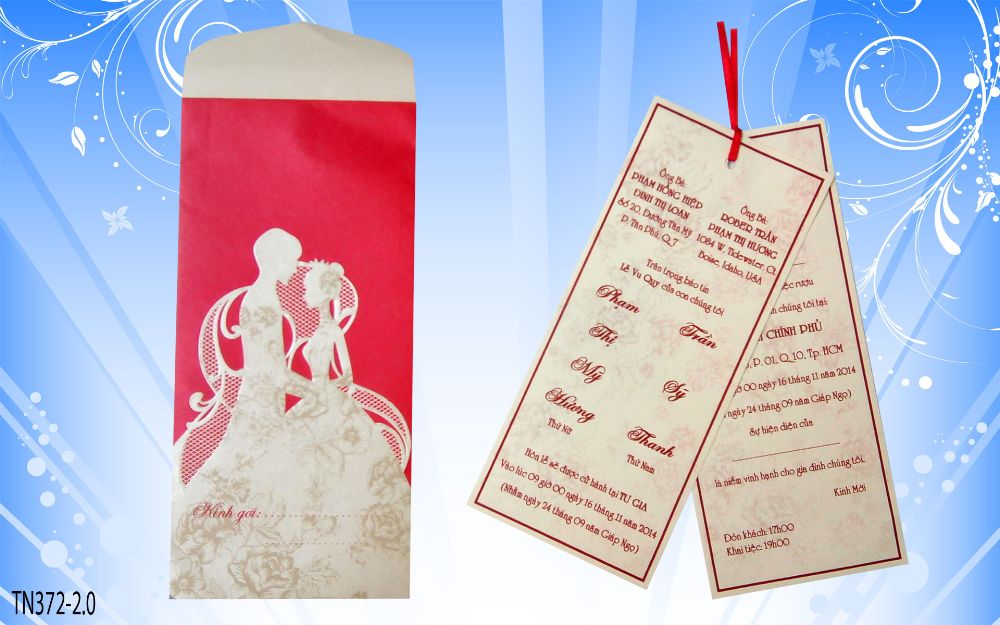 Với mong muốn mang lại những dấu ấn riêng trong ngày trọng đại của cô dâu, chú rể, thiệp cưới của CTY IN RẠNG ĐÔNG mang đến những bộ thiệp độc đáo, sáng tạo, nhiều mẫu mã mới. Đặc biệt: mạ vàng tên cô dâu, chú rẽ miễn phí trên thiệp cưới. In thiệp cưới giá rẻ, chất lượng .